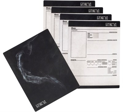Набор из пяти одностронних черно-белых бланков персонажей со скруглёнными уголками. Они сделаны из плотной бумаги и покрыты сверху толстым слоем современной матовой ламинации, на которой можно писать карандашом и многократно стирать написанное обычным ластиком без малейшего вреда для бланка.