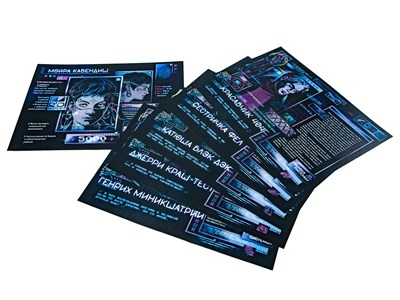 Лаконично изложенные правила игры «Кадат», бережно адаптированные под жанр, чтобы позволить игрокам и их героям погрузиться в ту самую атмосферу high tech & low life.