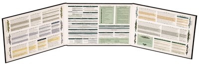 Трёхсоставная ширма с отставом, каждая сторонка которой 220×290 мм. Используется уплотнённый 3 мм картон и полноцветная печать.