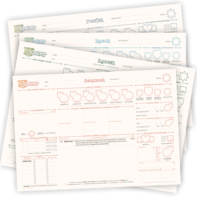Комплект из девяти двухсторонних пустых классовых бланков персонажей и одного бланка питомца.
