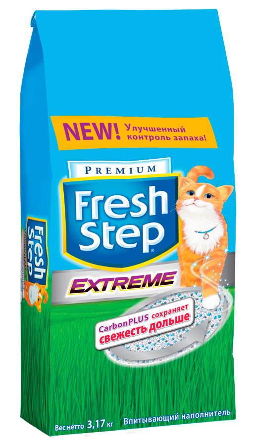Fresh Step - впитывающий наполнитель для кошачьего туалета с активированным углём и антибактериальными компонентами устраняет даже самые неприятные запахи.